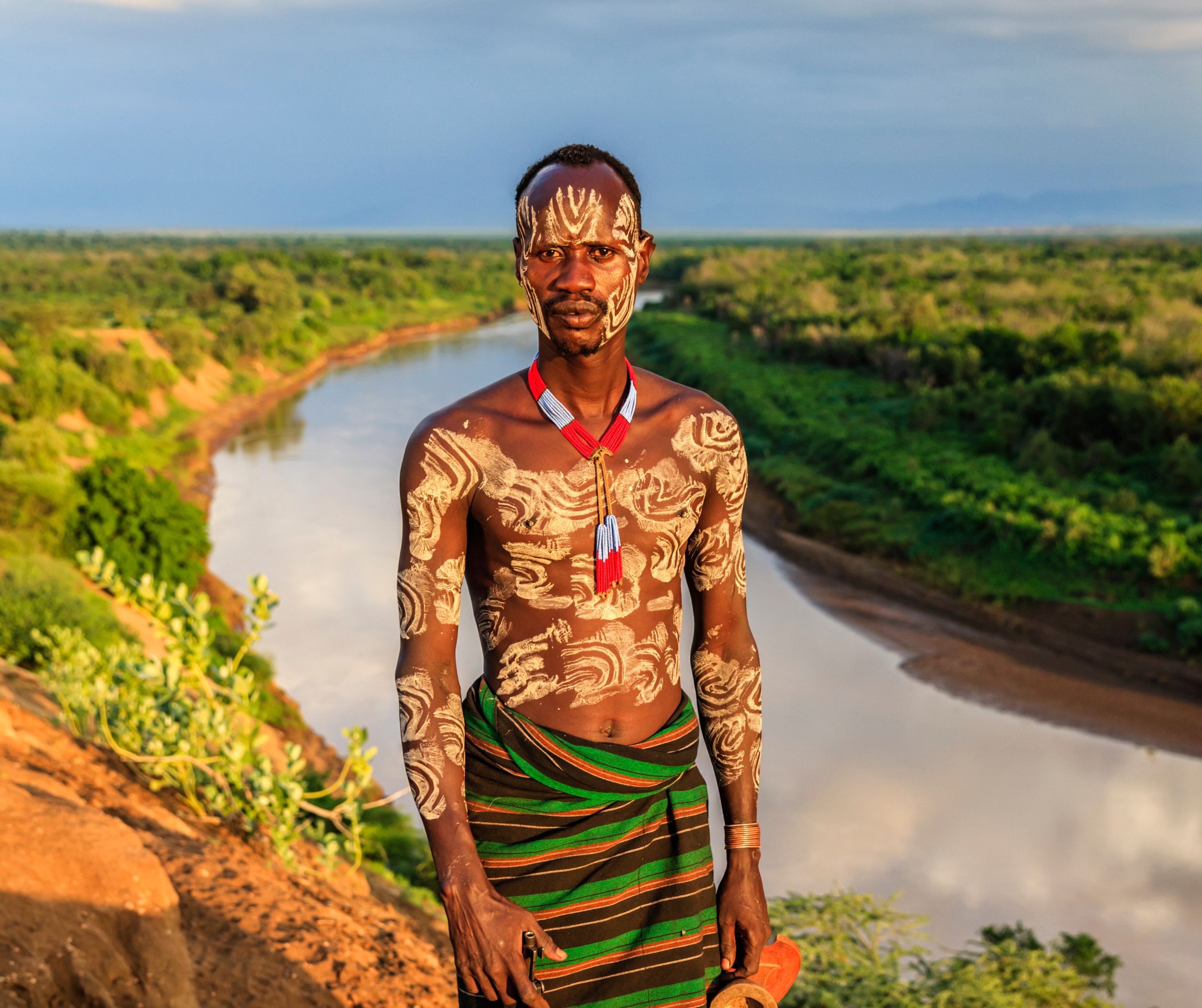 Rano wizyta w Koricho, osadzie plemienia Karo, położonej malowniczo nad rzeką Omo. Karo są mistrzami malowania ciała gliną i naturalnymi barwnikami – tworzą na skórze skomplikowane wzory. Podziwiamy tradycyjne domy i niezwykłe widoki. Po południu przejazd do Arba Minch, największego miasta regionu, położonego między jeziorami Chamo i Abaya, u stóp gór. Nocleg w hotelu w Arba Minch.