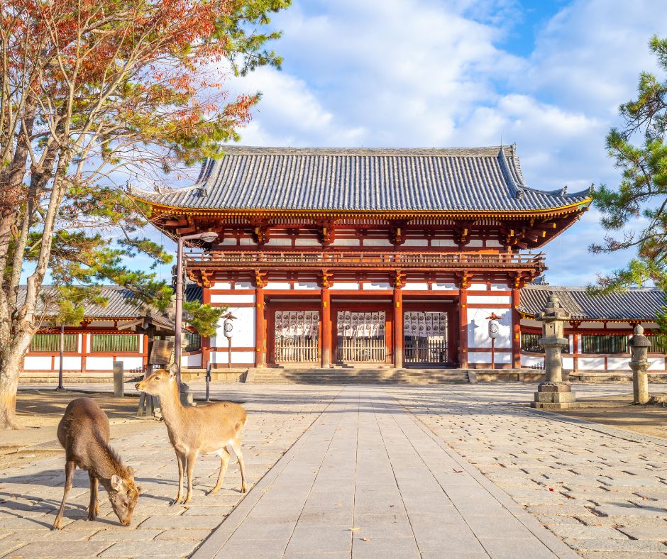 Po śniadaniu spotkanie z przewodnikiem w hotelu, który odbierze Was prywatnym vanem. Program dnia zaczyna się od wyjazdu do miasta Nara, czyli pierwszej stolicy Japonii, gdzie na każdym kroku można zobaczyć wolno biegające jelenie, które są symbolem tego miasta. W Narze program przewiduje zwiedzenie Todaiji Temple z jedną z największych rzeźb Buddy.
