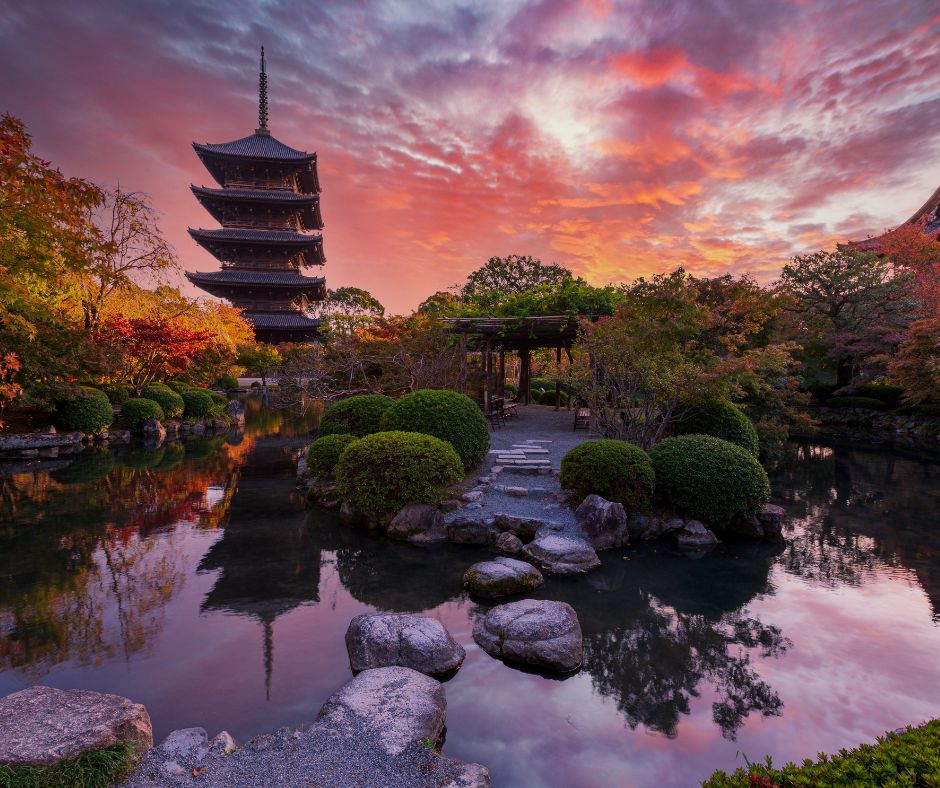 Po śniadaniu spotkanie z przewodnikiem w hotelu. Kolejny dzień zwiedzania Kyoto. Program zaczyna się od wizyty w Fushimi Inari, słynnej świątyni z tysiącami czerwonych torii prowadzących na szczyt góry. Następnie udacie się do świątyni Toji.