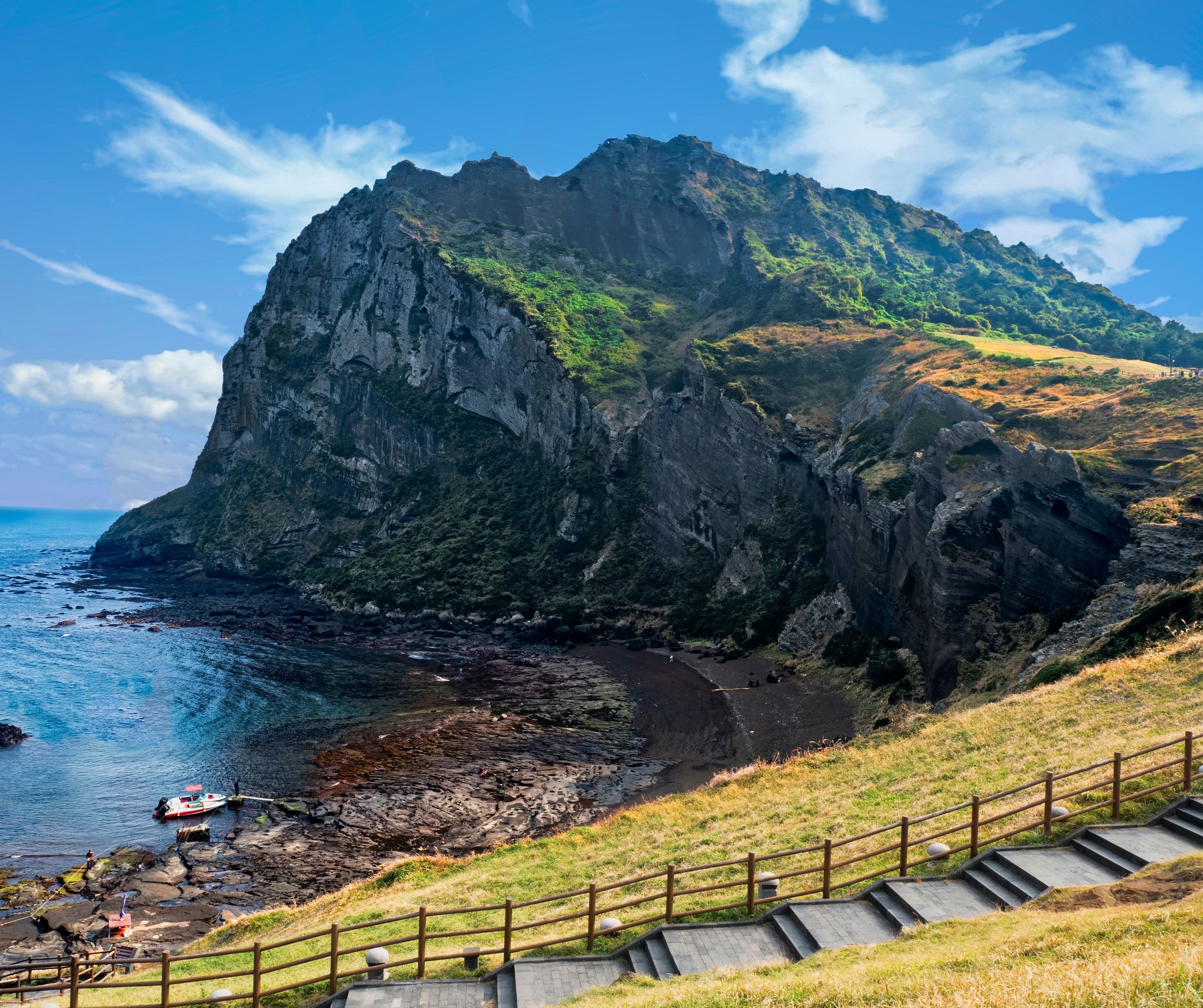 Po śniadaniu w hotelu. Ten dzień przeznaczony jest na odkrywanie wschodniej części Jeju. Najpierw czeka Państwa wejście na krater Seongsan Ilchulbong, wpisany na listę UNESCO. To spektakularny krater wulkaniczny, zwany „Górą Wschodzącego Słońca”, z którego szczytu rozciąga się widok na ocean. Najpiękniej wygląda o poranku, gdy pierwsze promienie słońca rozświetlają niebo nad Jeju. Następnie poznacie Państwo tradycję kobiet Haenyeo, które od wieków nurkują bez sprzętu, aby wydobywać małże i algi. Potrafią one wstrzymać oddech na kilka minut, a ich unikalna kultura została wpisana na listę niematerialnego dziedzictwa UNESCO. Po południu czas wolny na odpoczynek na plaży lub spacer po wybrzeżu. Wieczorem kolacja i powrót do hotelu. Nocleg w Jeju.