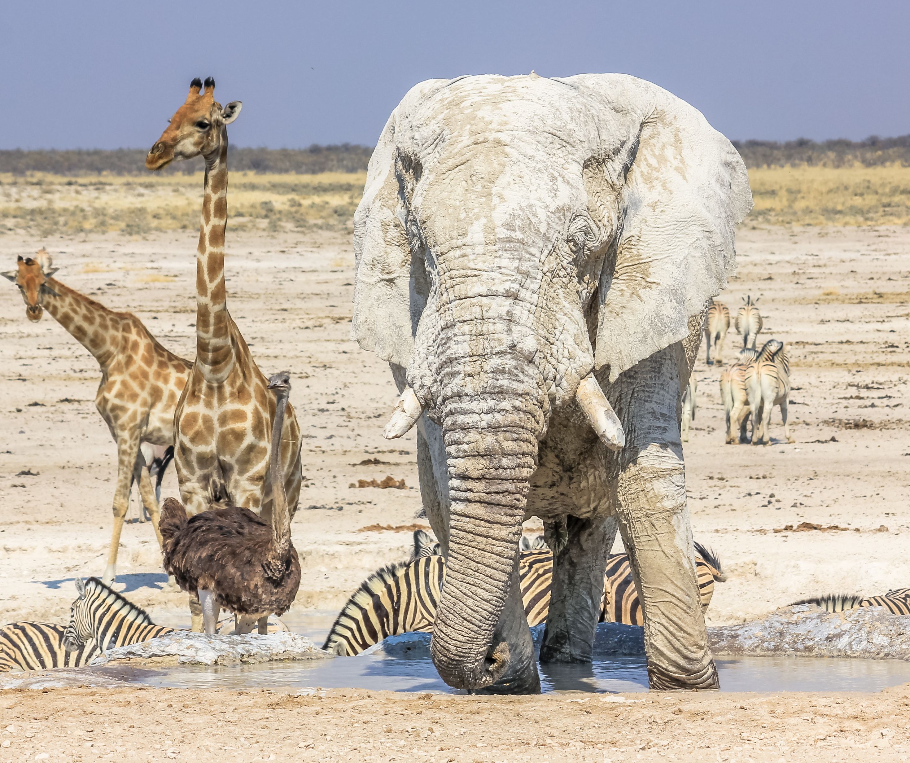 Tego dnia będziemy kontynuować zwiedzanie parku, aby mieć okazję fotografowania dzikiej zwierzyny. Etosza to najsłynniejszy park Namibii, zajmuje rozległy, równinny i dość suchy teren. Występują w nim wszystkie zwierzęta tzw. „Wielkiej Piątki”. Centralną część parku stanowi rozległe solnisko, które w porze deszczowej zmienia się w jezioro opanowane przez flamingi. Fotografowanie i „pogoń” za różnymi gatunkami zwierząt. Po południu powrót do lodży i czas na relaks i kąpiel w basenie. Kolacja i nocleg w okolicach Etoszy.