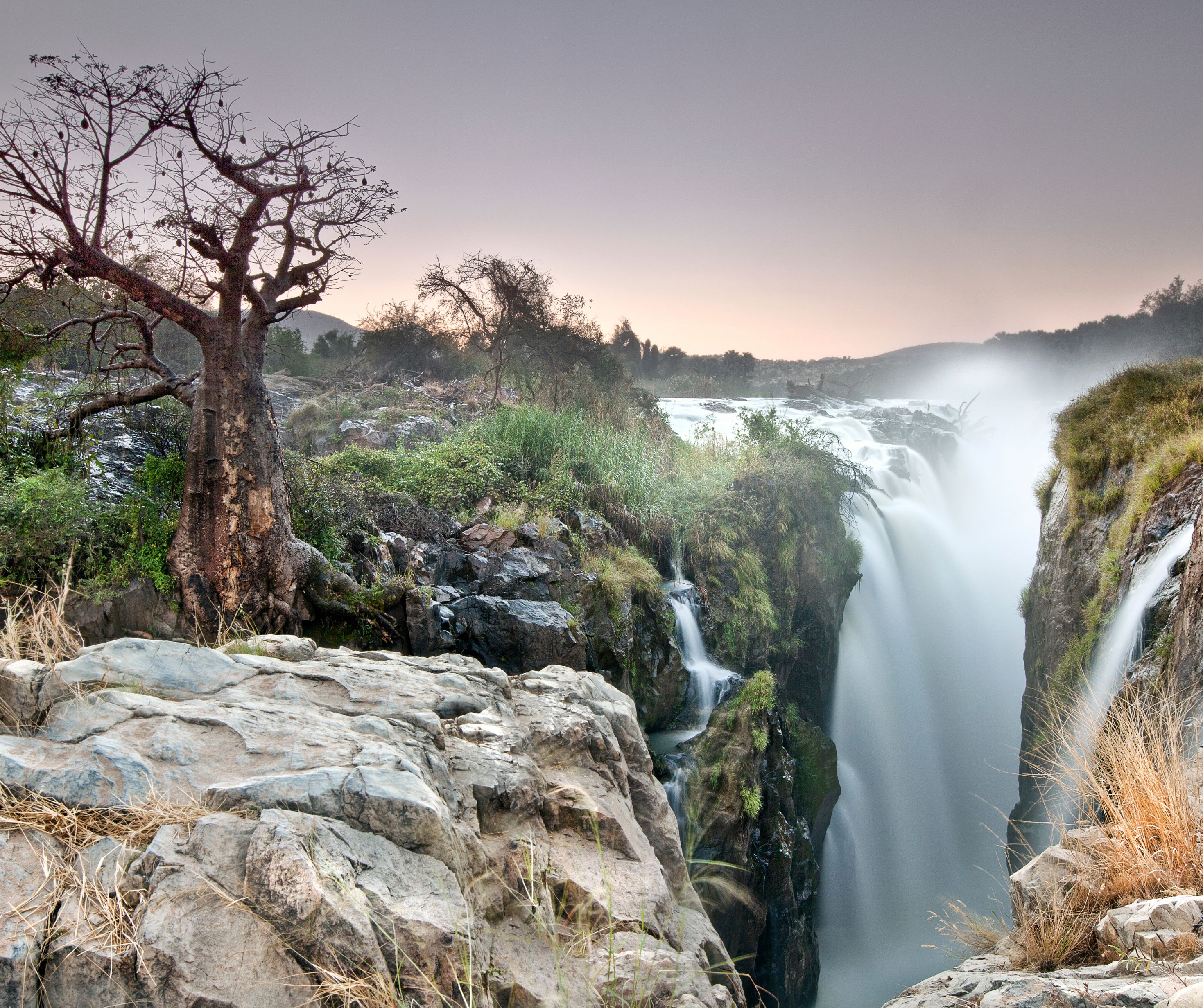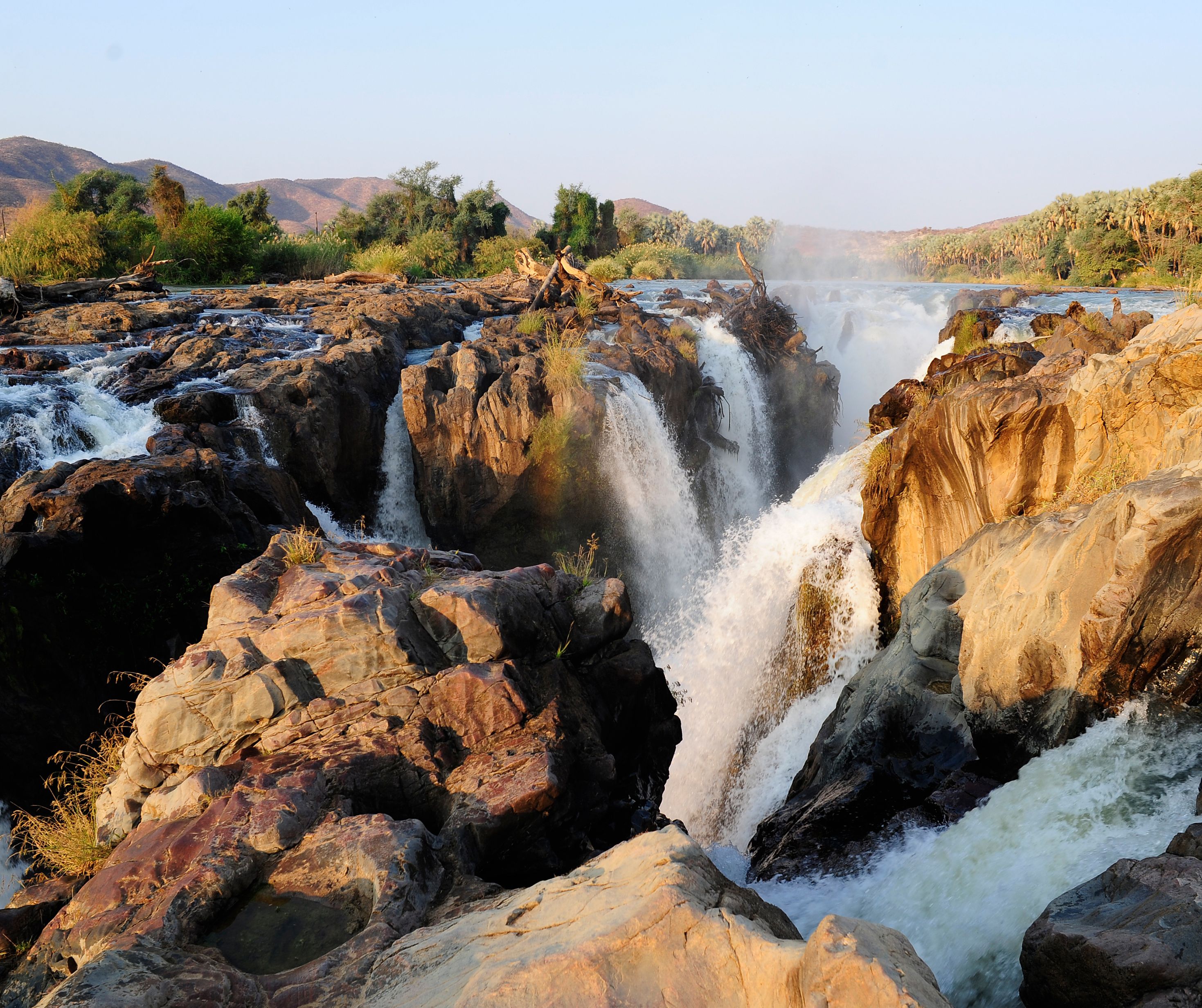 Jesteśmy na samej granicy z Angolą. Granicę między Namibią a Angolą stanowi rzeka Kunene, na której znajdują się ładne wodospady o jakże wdzięcznej nazwie Epupa. To sekwencja kilkunastu wodospadów na długości 1,5 km, wijąca się rzeka pośród licznych figowców i baobabów robi znakomite wrażenie i cieszy oko. Po południu powrót do lodży i czas wolny na odpoczynek.