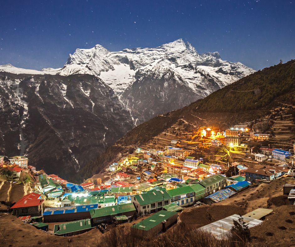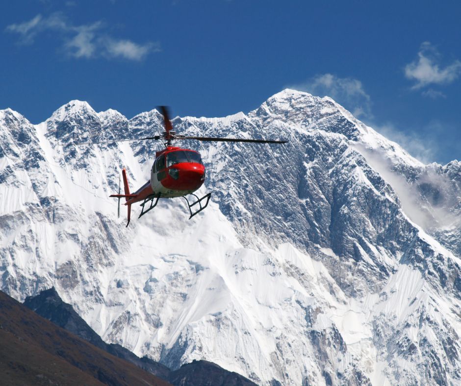 Wymeldowanie z hotelu, a razem z prywatnym kierowcą udacie się Państwo na krajowe lotnisko, skąd wyruszycie do Lukli. Podczas lotu będziecie mogli podziwiać bujne doliny, zielone lasy i przełęcze Nepalu. Po dotarciu do Lukli (2860 m), będzie chwila na odpoczynek i złapanie oddechu. Następnie czeka Państwa niezapomniana chwila, czyli widokowy lot helikopterem nad ośnieżonymi ośmiotysięcznikami. Będziecie lecieć 10 minut i dotrzecie do Namcze, w którym znajduje się Wasz kolejny hotel. Po zakwaterowaniu w hotelu czas wolny na własne aktywności. szczególnie polecamy udać się na zwiedzanie okolicy Namcze Bazar. Powrót do luksusowym hotelu. Nocleg w Lukli.
